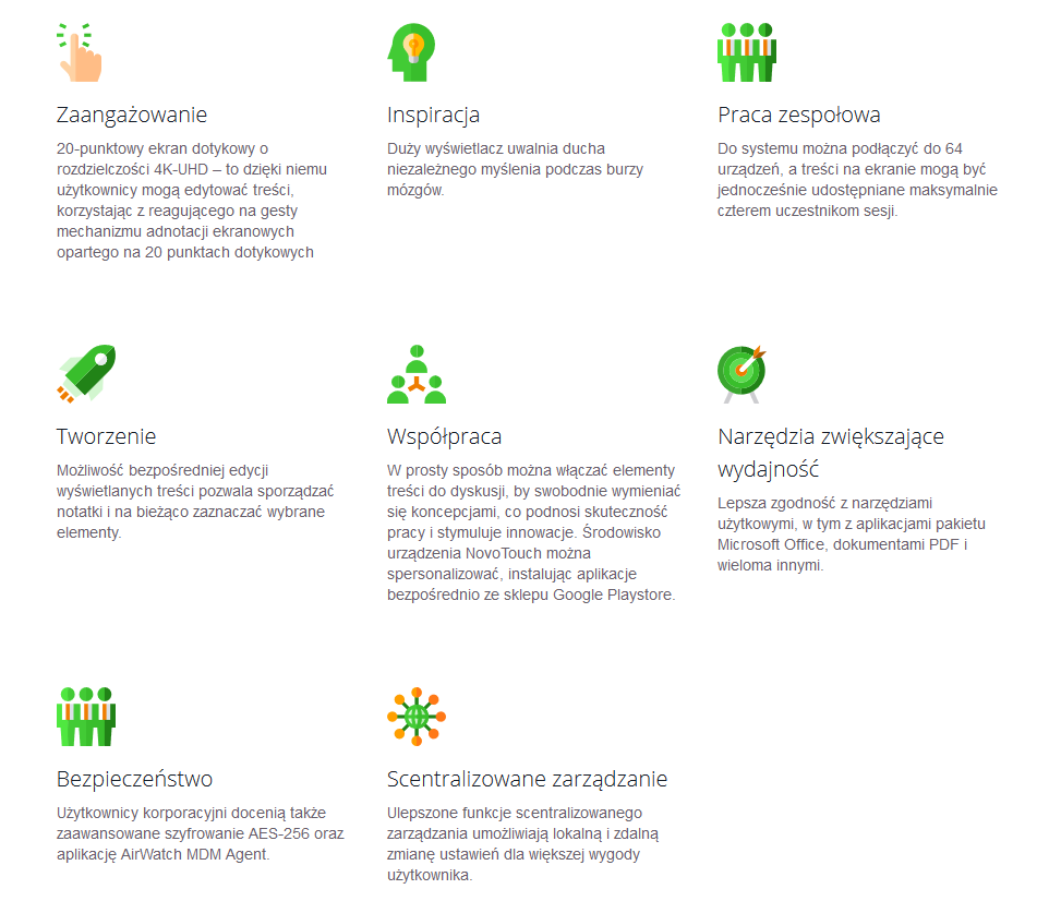 Odwzorowanie obrazu możliwe jest na wielu urządzeniach NovoConnect, co zawdzięcza funkcji NT LiveScreen. Ułatwia to pracę podczas zdalnych spotkań. Istnieje opcja przesyłania strumieniowego wszelakich treści z urządzeń NovoTouch na inne urządzenia tej serii lub NovoEnterprise. Zaleca się jednak stosowanie do 4 urządzeń w przypadku nieobsługiwania przez router protokołu RTSP, a tylko TCP. Nie zmienia to jednak faktu, iż nasze monitory interaktywne pozwalają użytkownikom na większe zaangażowanie ze strony swoich pracowników i lepszą motywację do pracy zespołowej dzięki sporej wielkości wyświetlaczom i interaktywnej technologii 4K – UHD.
