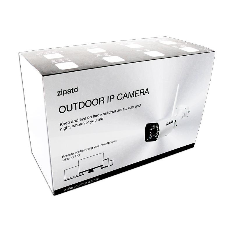 Zipato Outdoor IP Camera to jeden z wielu części skłądowych systemu bezprzewodowego Zipato. To bezprzewodowa zewnętrzna kamera IP, która stoi na straży domu i jego mieszkańców, pozwalajaca na zdalną kontrolę bieżącej sytuacji wokół domu. Urządzenie wyróżnia się wysoką jakością rejestrowanego obrazu (HD – 720p) przy wykorzystaniu bezprzewodowej komunikacji z użytkownikiem, za pośrednictwem sieci lokalnej lub internetu (przez urządzenie mobilne z systemem iOS, Android lub Windows). Producent wraz z kamerą dostarcza darmową aplikację (Zipato Smart Monitoring Kit) pozwalającą na zdalny podgląd live lub odtworzenie nagrania z dowolnej sytuacji alarmowej. Kamera zamknięta jest w szczelnej obudowie o klasie szczelności IP66, odpornej na niekorzystne warunki atmosferyczne, co pozwala na jej montaż na zewnątrz budynku. Kamera Zipato Outdoor IP może być też częścią bardziej złożonego systemu Zipato, jako element nieograniczonych scenariuszy tworzonych przy wykorzystaniu Zipato Smart Rule Creator.